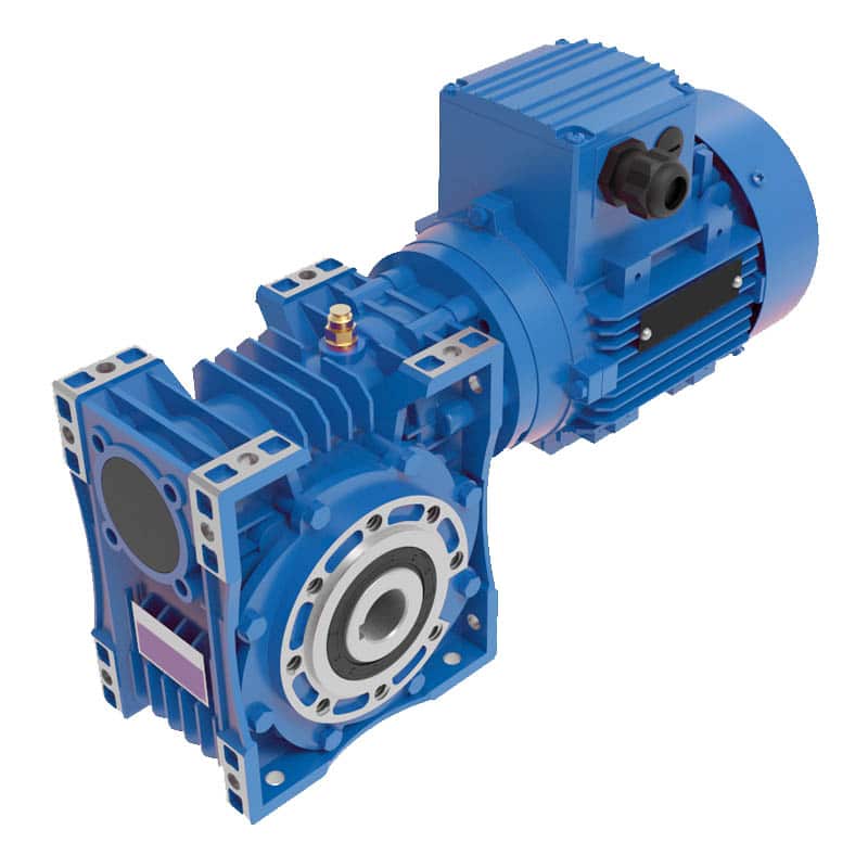 Worm gear speed reducers range is a brand new product generation of products developed by our company. They are characterized by a kinematic motion made of a casehardened and tempered steel worm with a ground thread and a wheel made out of a spheroidal graphite cast iron hub with addition of bronze. This series are made up for 9 sizes with ratios from 1:7.5 until 1:100, are manufactured in die-cast aluminium frame up to the model 90 and in grey cast iron sizes 110 and 130. As an extension range we have avaliable 3 sizes of pre-stage helical units PR, combination of double worm gearmotors, single and double output shafts and torque arms.